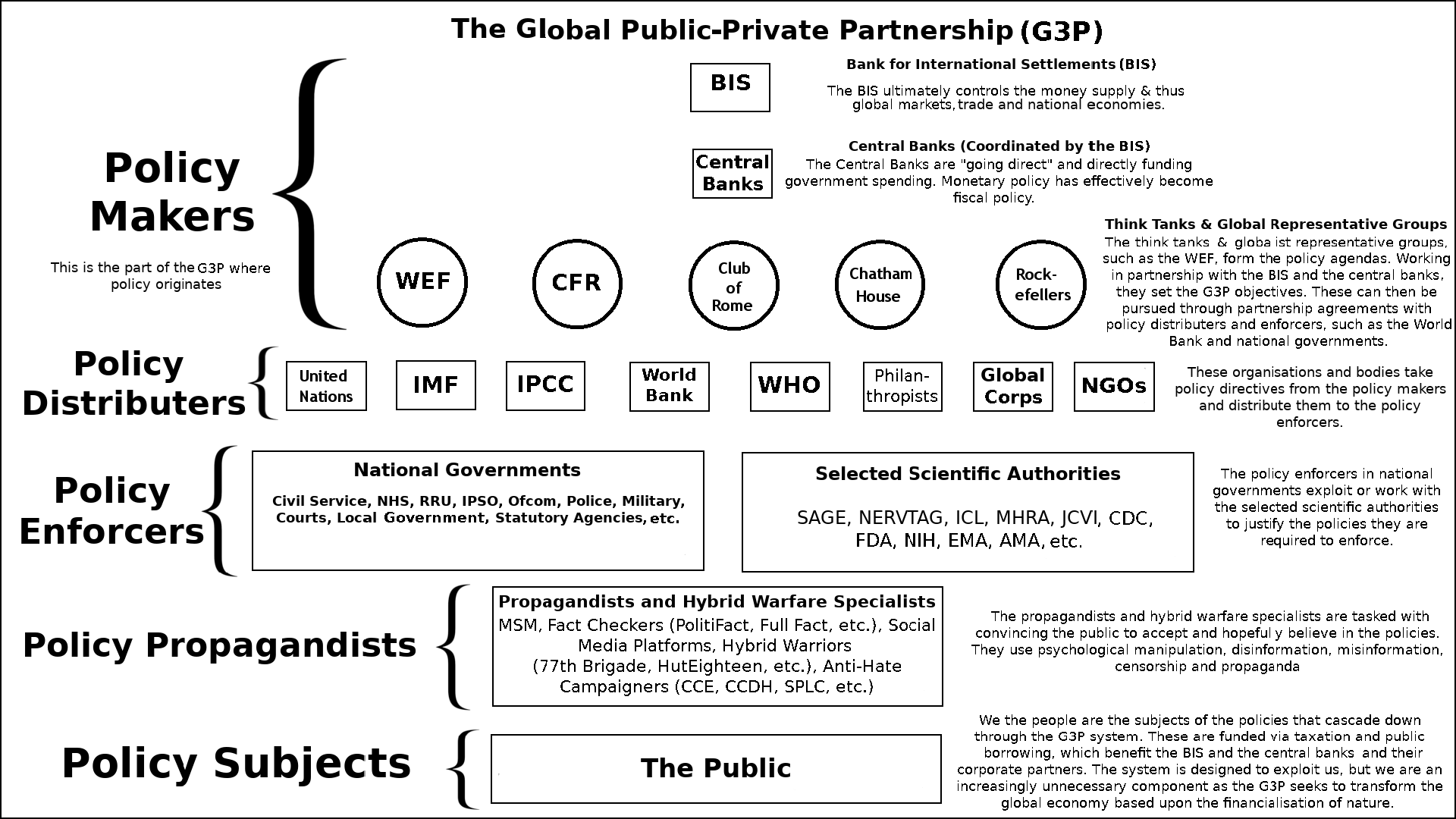 Organizational chart by Iain Davis, author of Pseudopandemic and What is the Global Public-Private Partnership (G3P)?