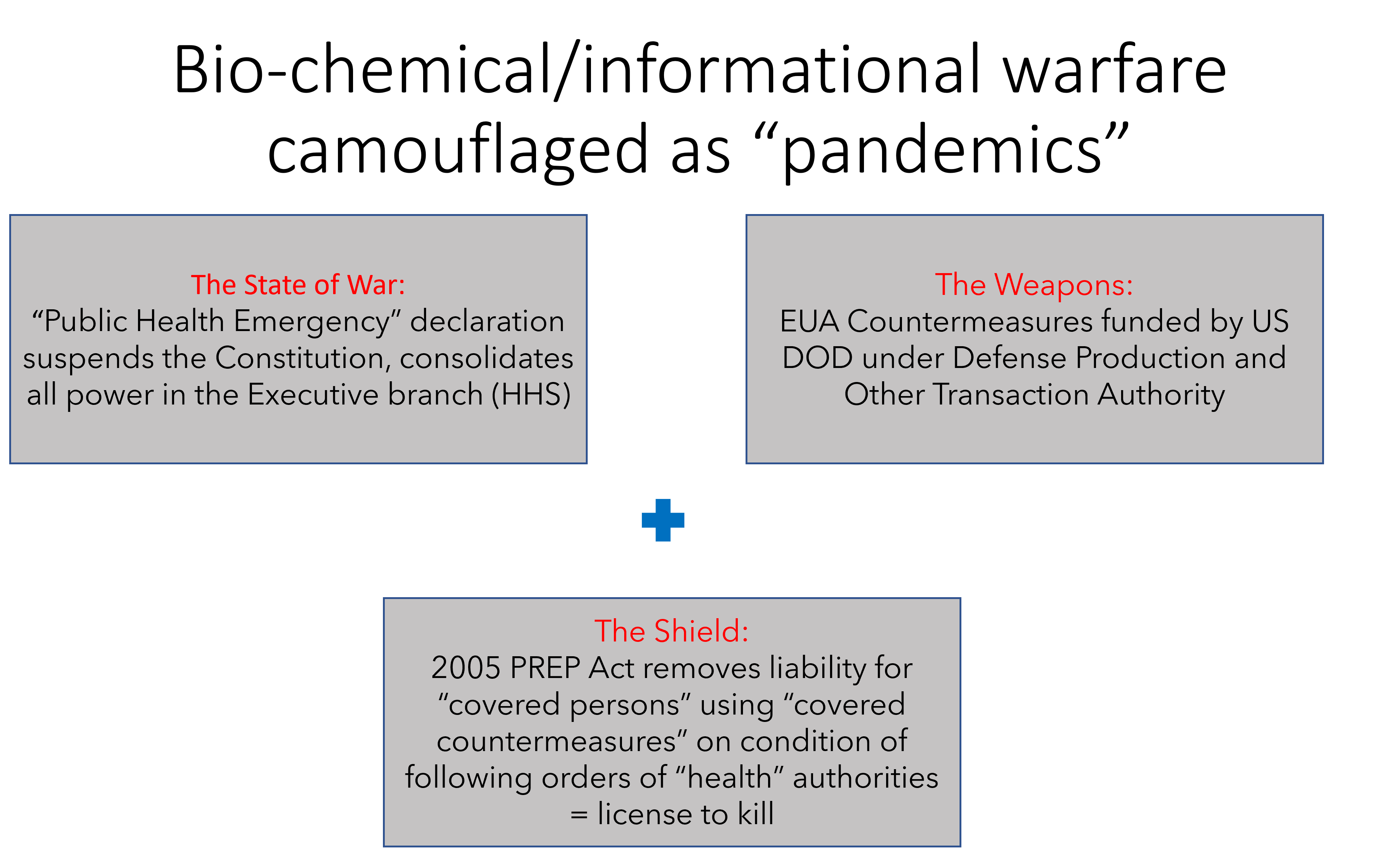 Weaponized "healthcare" for global population control and enslavement; Intentional killing - legal frameworks for State-sponsored biochemical warfare.